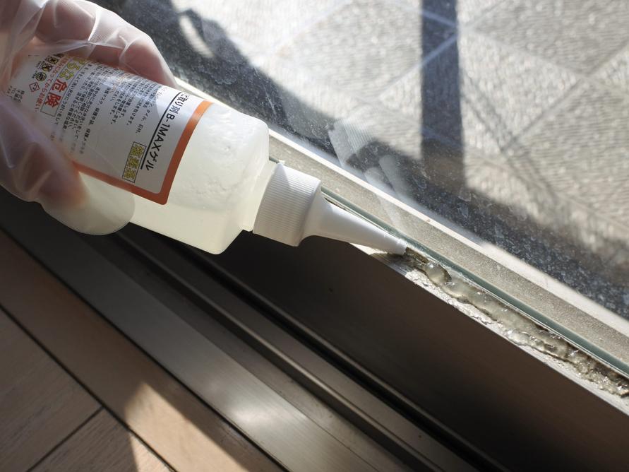 水分が多く粘性の低いカビ取りジェルだと、塗り込んでも垂れてくることがあったのですが、コレなら垂れずに密着してくれるんです。