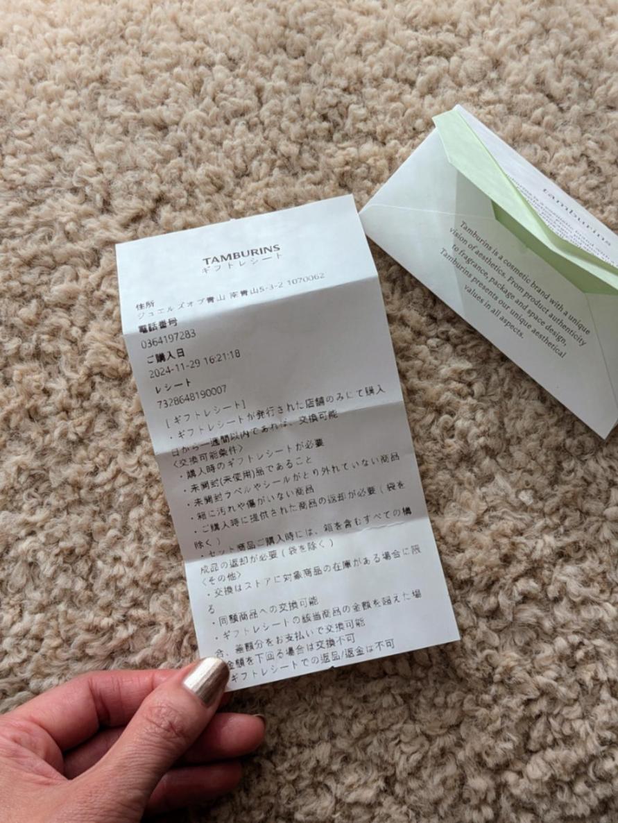 ギフト用の商品にはギフトレシートが入っているから、ギフトを受け取った人でもタンバリンズの別のアイテム(リップバーム以外でもOK)に交換が可能です。