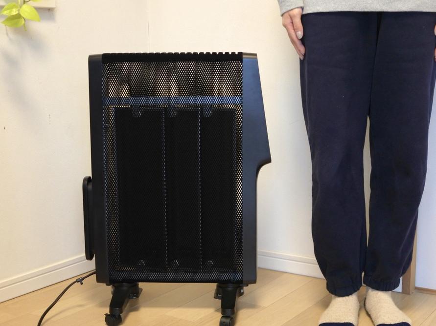 そんななかこのヒーターを導入する決め手になったのは、表面の「フロッキー加工」。万が一、稼働中のヒーターに触れてもベロアのような生地に覆われているので、ペットがいるわが家も安心して使えています。
