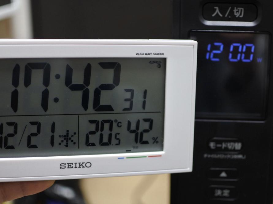 今回は、温度モード・節電モード・パワーモードの3種類のモードがあるなかで、すぐに暖まりたいときによく使っているパワーモードの1200W(強)で試してみることに。