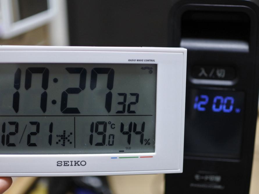 ヒーターをつける前は17.9度。15分稼働させてみると、