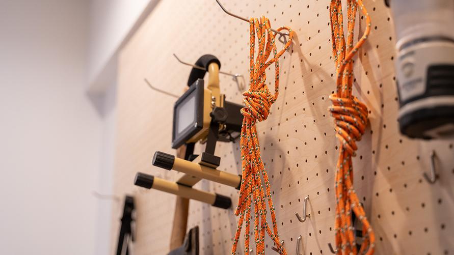 ロープや小さいランタン、細かい工具などは引き出しにしまい込むとガチャガチャしがち。