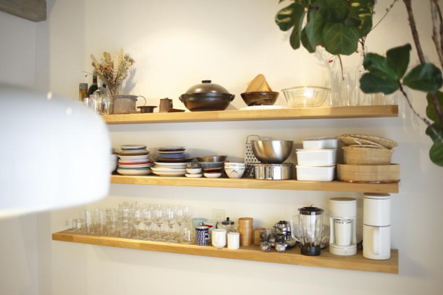 そんなとき、器が選びやすいオープンシェルフなので、みんながそれぞれに、好みの器をチョイスしてくれるんです。