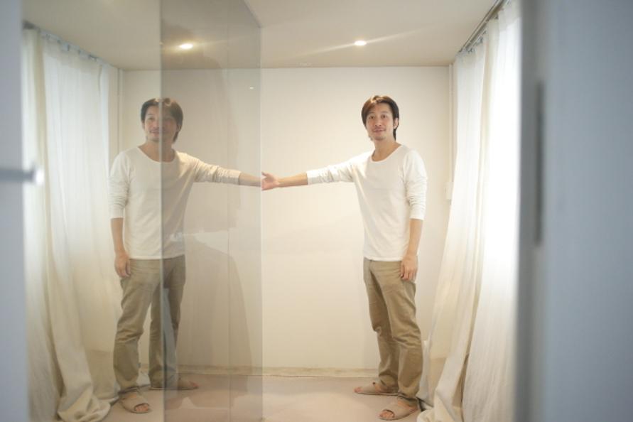 寝室がガラス張りなのは、明るい家にするため、玄関側の窓からも光を取り入れたかったからです。寝室に普通の壁を立てると、寝室もリビングも暗くなってしまうので。でも、僕寒がりなので、あんまりツーツーなのも……。というわけで、建築家さんのアイデアで、オープンになりすぎず、光も入るガラスの壁にしてもらったんです。