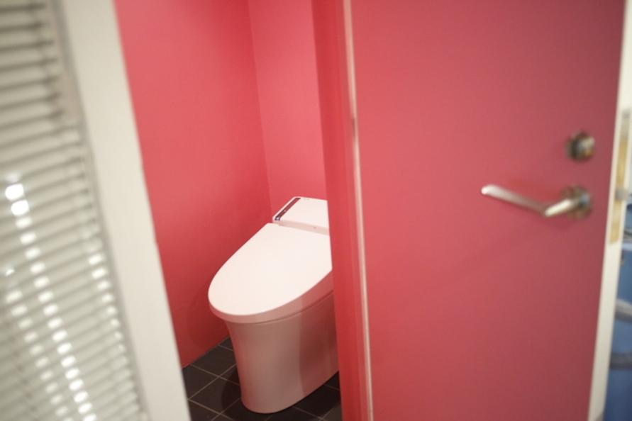 トイレは、設計中、家を白くシンプルにまとめたため、終盤には「色で遊びたい」気持ちになって……。そこでトイレだけ、いちばん好きなピンク色にして、遊んでしまいました。遊びに来た友人のお子さんが、びっくりしてトイレに入れなかったこともありましたね(笑)。