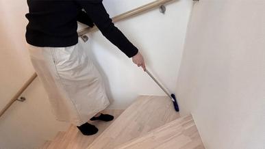 2つの伸縮式モップパッドが床をしっかり拭いてくれるので、水拭き後の床はサラサラ。裸足で歩いても気持ちのいい肌触りです。