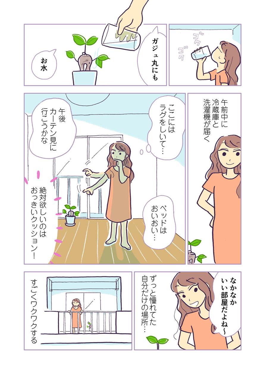 第1話は、一人暮らしに憧れるユーリの視点と、彼女が育てている植物「ガジュ丸」の視点でそれぞれ描きます。