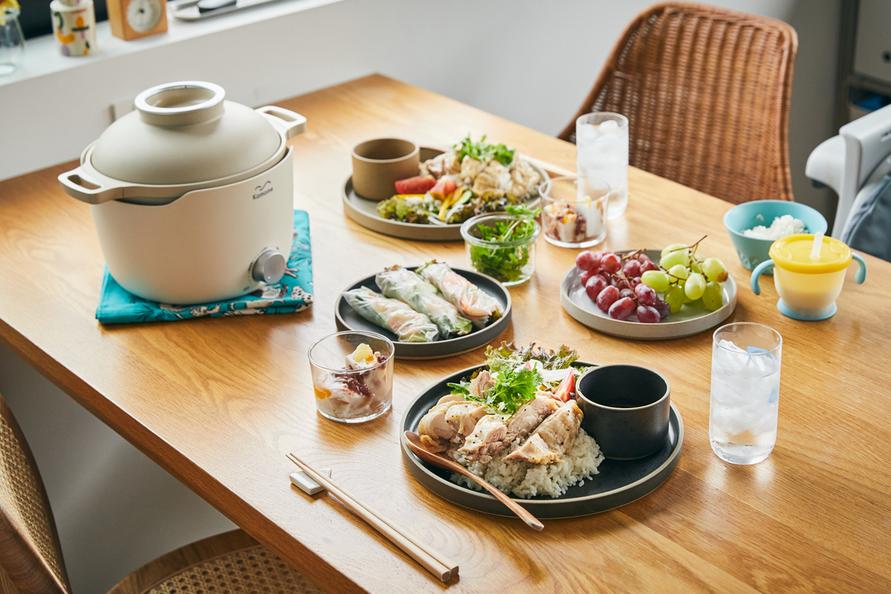 コンセントさえあればどこでも使えるので、キッチンに張り付いていなくても「ながら」調理ができるのもうれしいポイント。千恵さんはグリルパンをテーブルに置いて、一太郎くんの相手をしたり、パソコンで仕事をしたりしながら調理することもあるそうです。