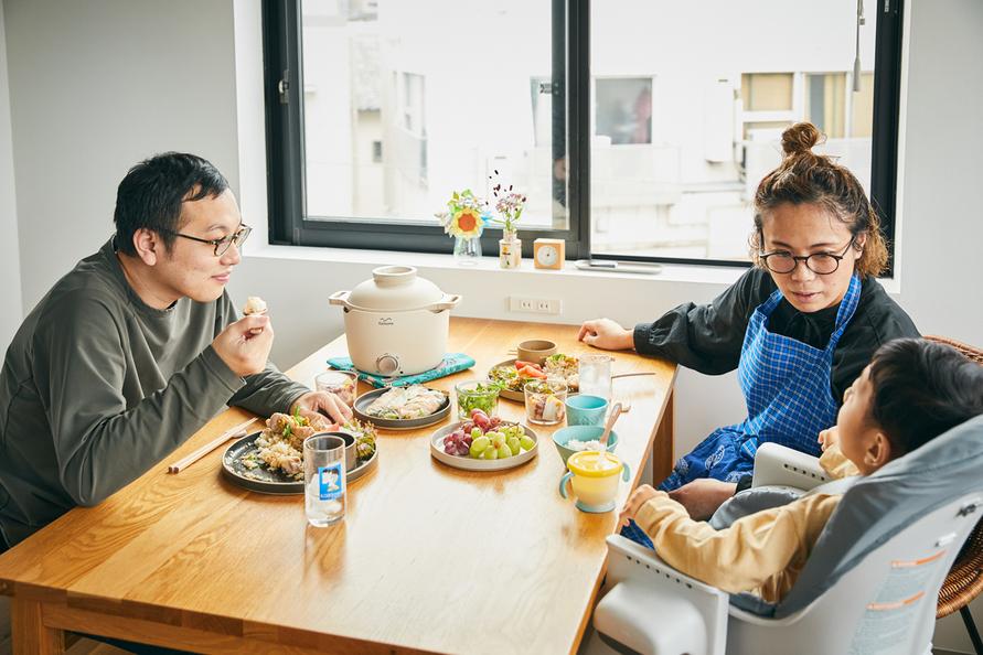 潤さんが残業の日は、千恵さんと一太郎くんと2人で晩ごはんを済ませますが、グリルパンは保温機能付きなので、潤さんも温かな料理を食べることができます(※炊飯器のような、炊いたお米の保温はできません)。