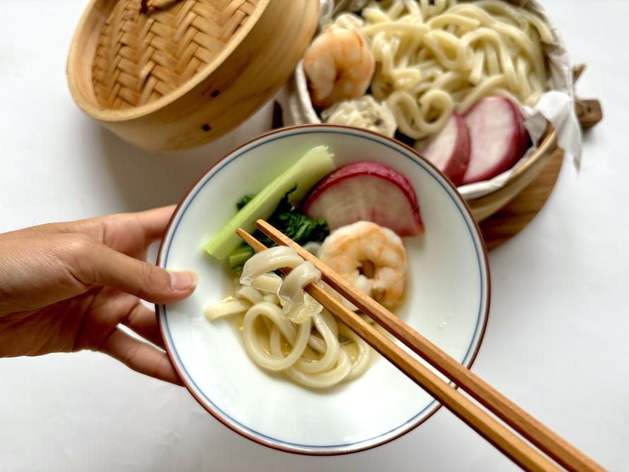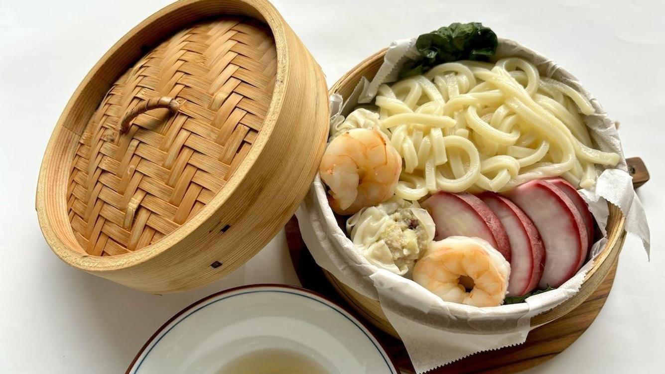 うどんはもっちり、海老はぷりっぷり、焼売はほっくり、かぶはジューシーに。それぞれの具材が最高の状態に蒸しあがりました!