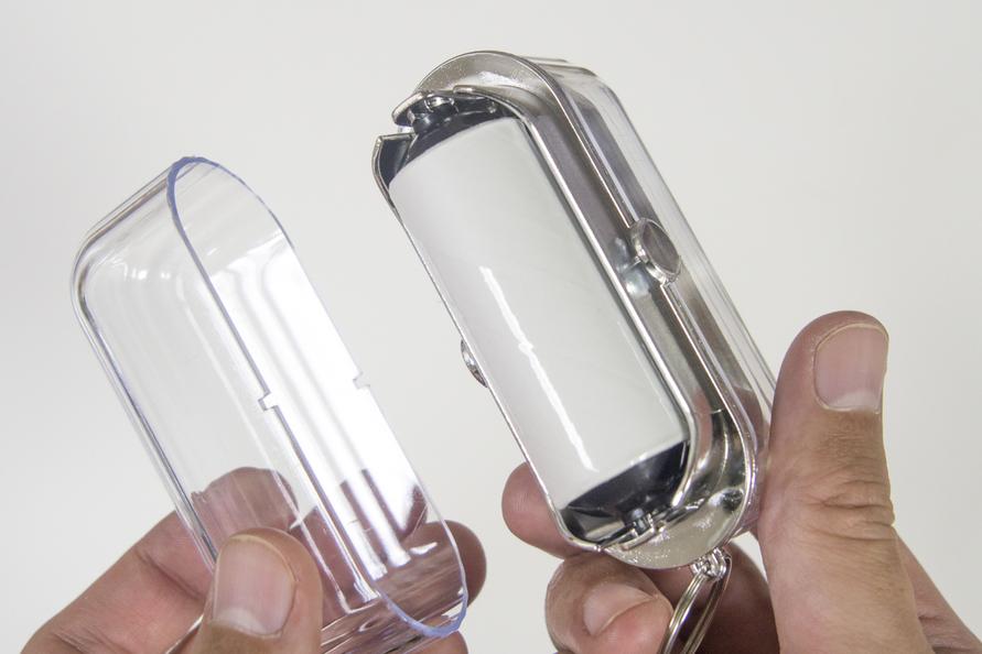 上部のカバーを外すとほこり取りブラシ、下部のカバーを外すと粘着ローラーが使えるようになる2way仕様になっていて、衣類などの種類によって使い分けることができるようになっています。