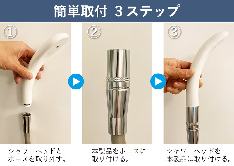 一般的なシャワーのネジ規格(G1/2)なので大半のシャワーでそのまま取り付け可能。工具も不要でねじ込むだけなので、開封から5分後には使えるのも魅力。