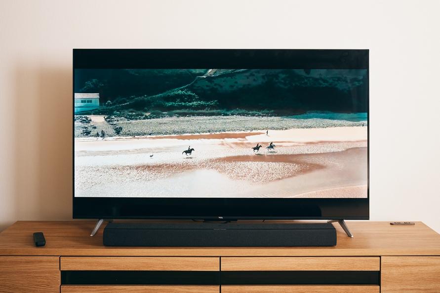 55インチの薄型テレビの足元にすんなりと収まるサイズ感。