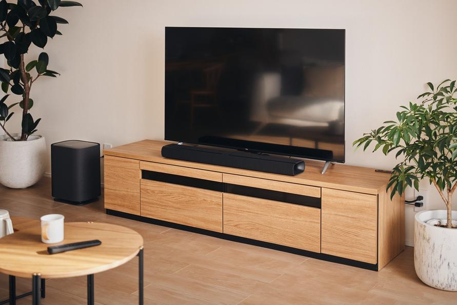 16cm径の重低音ドライバーをパワフルな100Wで駆動する本機はサウンドバー同様にコンパクトで、設置場所を選ばないのも嬉しいポイントです。