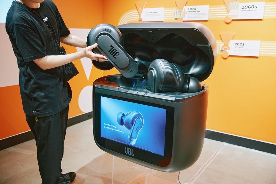 今回紹介された新作のなかでひときわ注目を集めていたのが、JBLのハイエンド完全ワイヤレスイヤホン「TOUR PRO 3」。