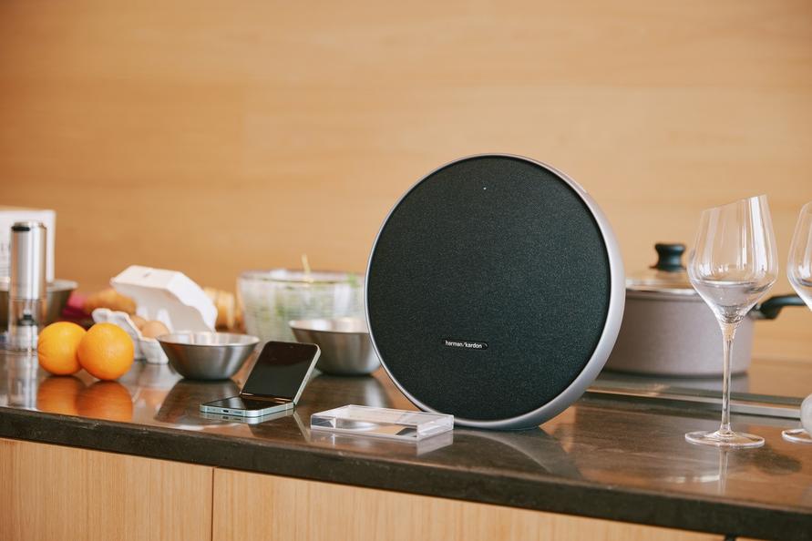 同じフロアには、新型Bluetoothスピーカーの「ONYX STUDIO 9」の姿も。円形のデザインが特徴的なこちらはバッテリー内蔵式で家中のどこにでも持ち運べる携帯性にも優れた一台。