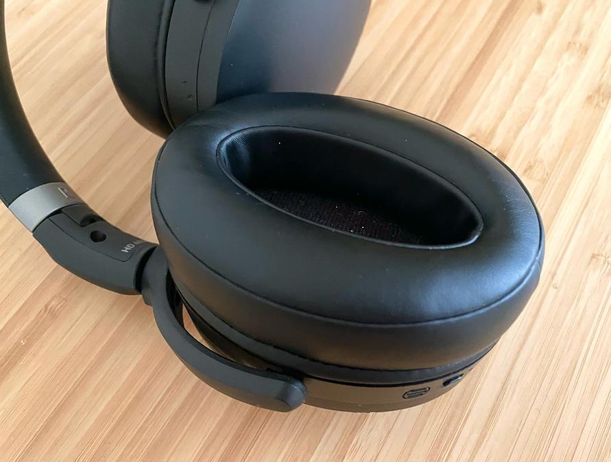 やわらかい合皮のイヤーパッドは大きめで、すっぽり耳が隠れます。