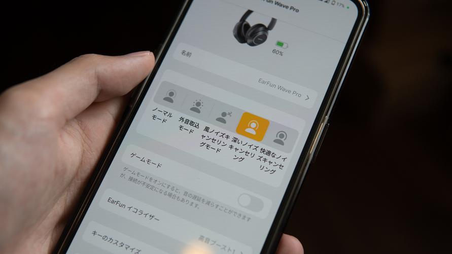 3段階でのノイズキャンセリングの強度設定・ゲームモードの切り替え・音の傾向を変えられるイコライザー設定・ボタンの割り振り設定・マルチポイントの設定など。