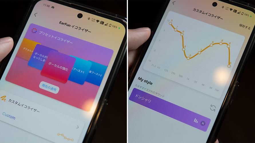 左:プリセット 右:カスタムイコライザー