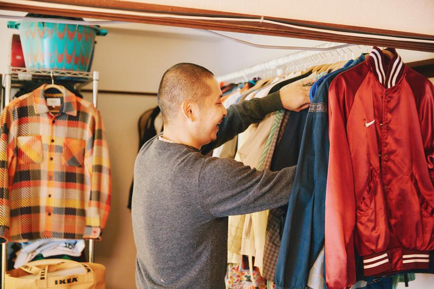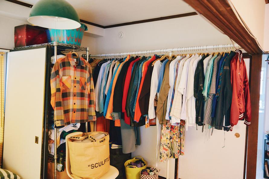 また妻のremiさんも古着屋で勤務していた経験があり、夫婦そろっての服好き。そんな2人の洋服収納はこのような感じです。
