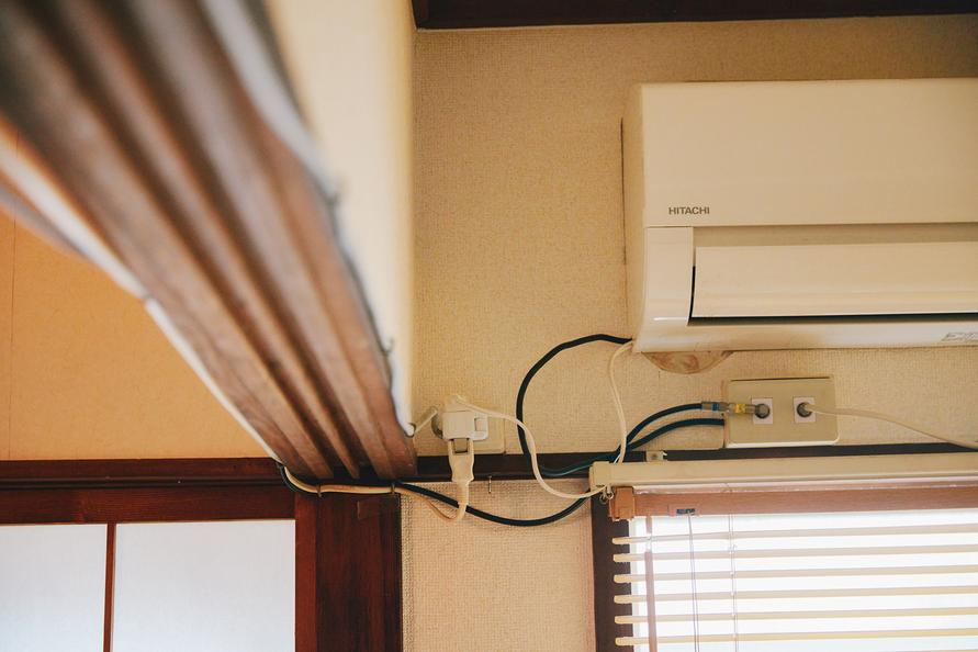 取材を進めている最中、「これめっちゃわかります」とカメラマンが共感したのが、まさかの配線。あまり気にしていなかったが、たしかに、かなりの長さの配線がエアコン横から延びていました。