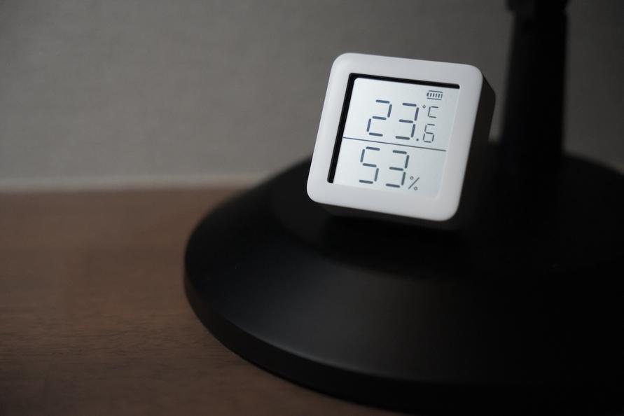 この温湿度計と加湿器が連動できて、自分の周りの湿度が設定した湿度になるように自動でコントロールしてくれるんです。