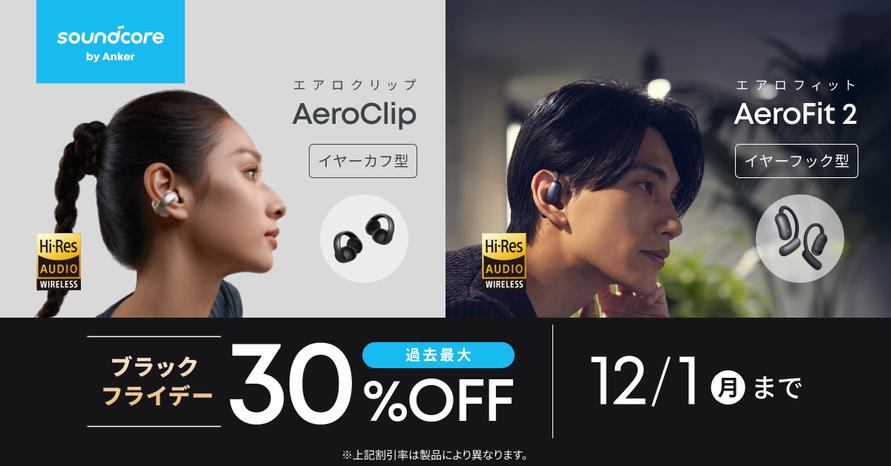 Anker 「Soundcore AeroClip」 17,990円(税込) → 13,490円 25%OFF(税込・Amazon ブラックフライデー特別価格)