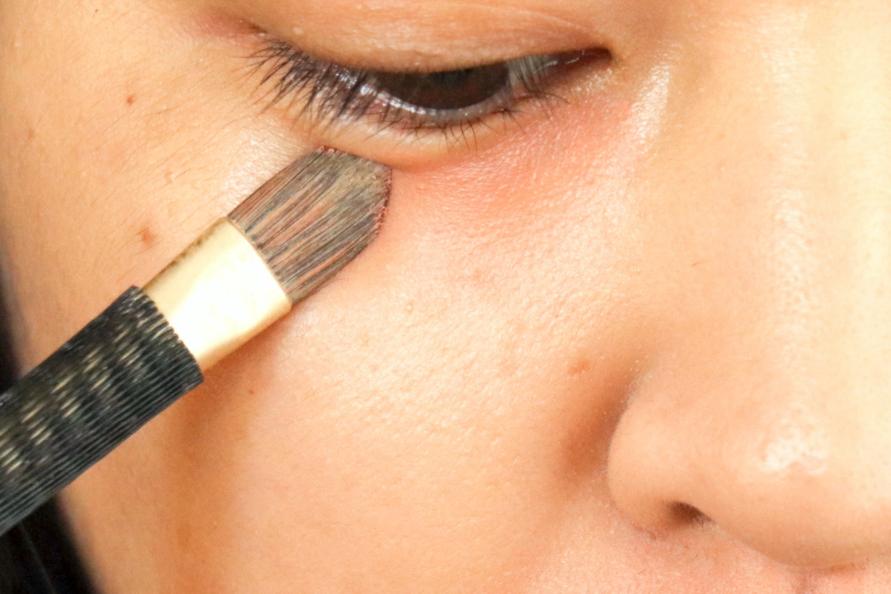 ポイントは、赤いコンシーラーをのせた部分より、少し広めにのせて馴染ませること。