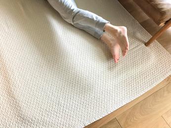 洗濯機で洗えて肌触りはサラサラ&ふかふか。イブルをリビングに敷いたらゴロゴロタイムが増えたよ