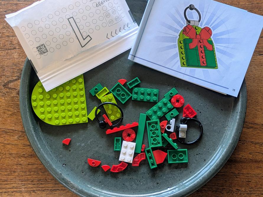 袋を開けると、赤やグリーンのレゴ ブロックらしい細かなパーツがたくさん。
