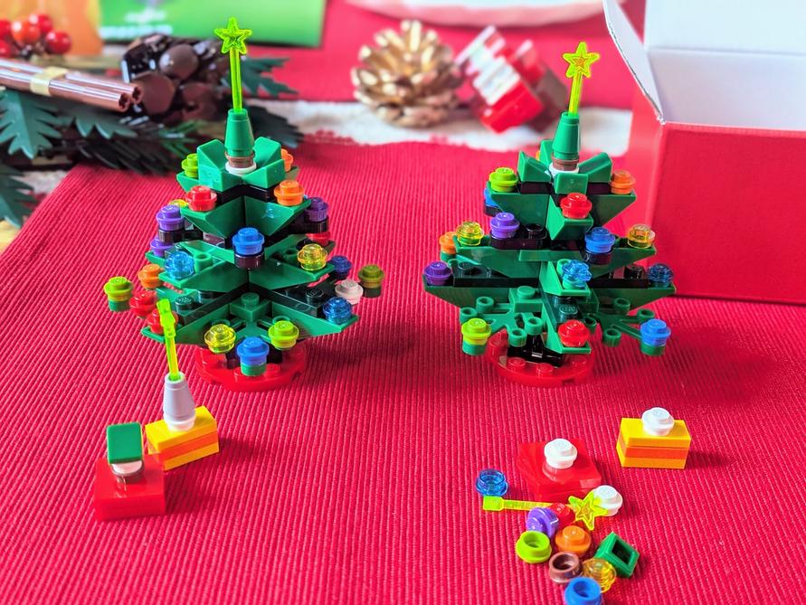 写真左はライターさんが余ったパーツで自由に組み立てた、クリスマスプレゼント付きのツリー。さすがの仕上りです!