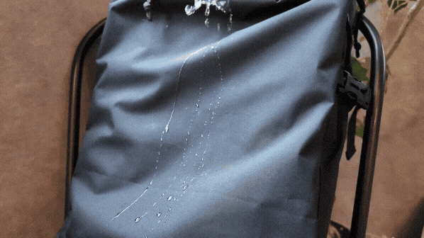 生地は三層ラミネート構造で水と熱に強く、それでいて通気性にも優れているのが特長。雨でも中身が濡れないのはもちろん、真夏でも背面が熱源になりにくいそう。