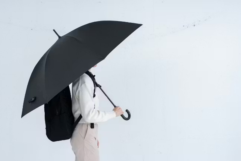 答えが、machi-yaに登場したフルカーボン長傘「Carbrella」です。親骨から持ち手まで主要パーツにカーボンを採用し、直径約120cmのワイドサイズながら重さは約320g。