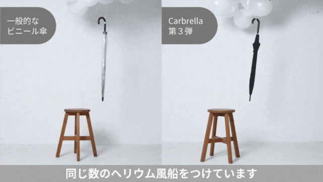 同じ量のヘリウム風船を使った浮かせる実験でも明らかなとおり、一般的なビニール傘よりも軽いため、持ち歩くのも快適そうですね!