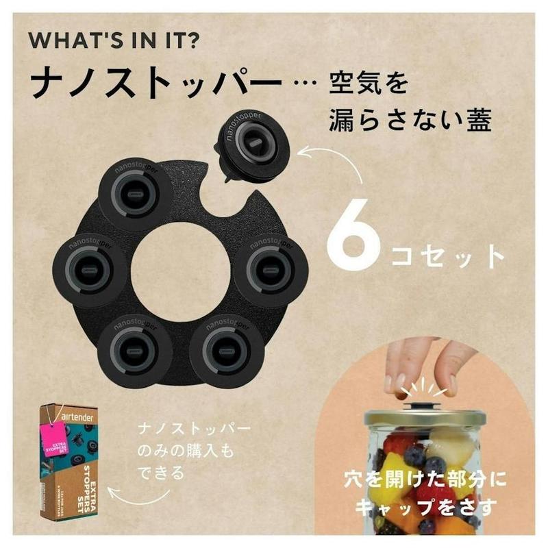 ナノストッパーの数だけ真空容器を増やせるのも「エアテンダー」の便利なポイント。繰り返し利用もでき、メーカー5年保証もあるのでコスパも高いかと。