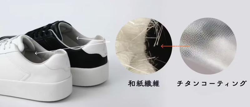内側には和紙繊維で通気性や湿気コントロール力を確保。またチタンコーティングで抗菌・防臭効果も備えています。