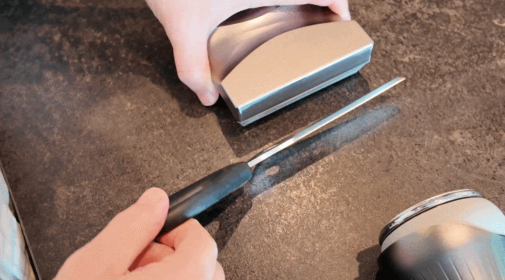 一般的な砥石だと少しずつ研ぐ必要がありますが、「KiruTone」なら刃先からアゴまで均一かつ一気に対応できるのも便利なポイントですよ。