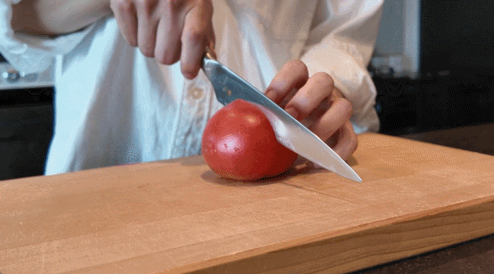 切れ味が落ちると潰すように切れるトマトも本来の性能ではスパッとカット。料理の効率はもちろんのこと、味や見た目も向上します。