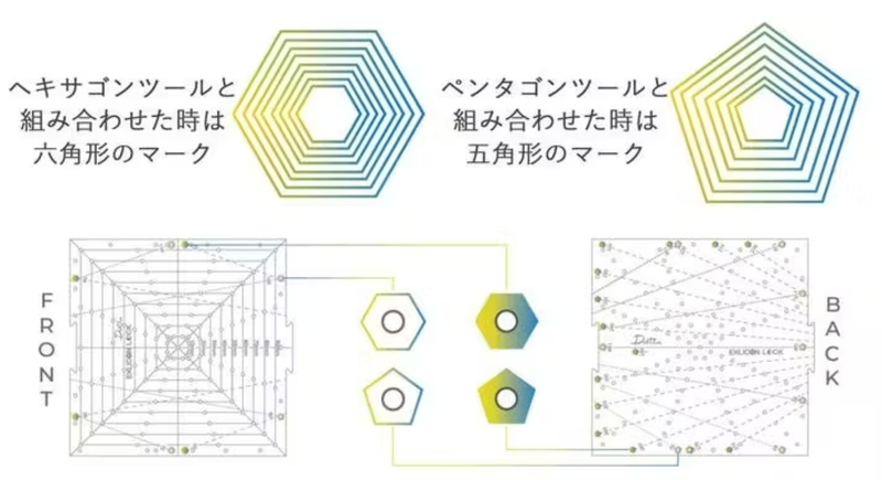 「EXLICON LOCK」はスクエア(四角形)・ヘキサゴン(六角形)・ペンタゴン(五角形)という3つ定規で構成された、作図の効率を上げるプロ仕様のデザインツール。