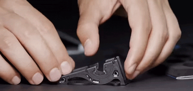 使用時は本体の半分をクルッと回転させ、折り紙のように左右の脚をたためばOK。直感操作で5秒もあれば完成するので、急いで使いたいシーンでも大丈夫。