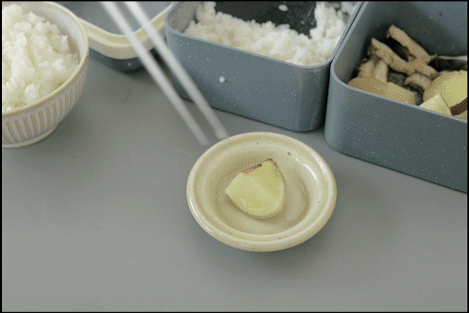 蒸し野菜は椎茸、じゃがいも、さつまいもをザク切りして放り込んでみました。いも類は火の通り具合が少し心配ですが……。