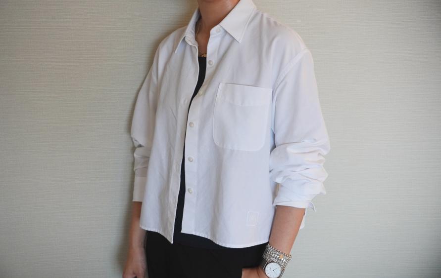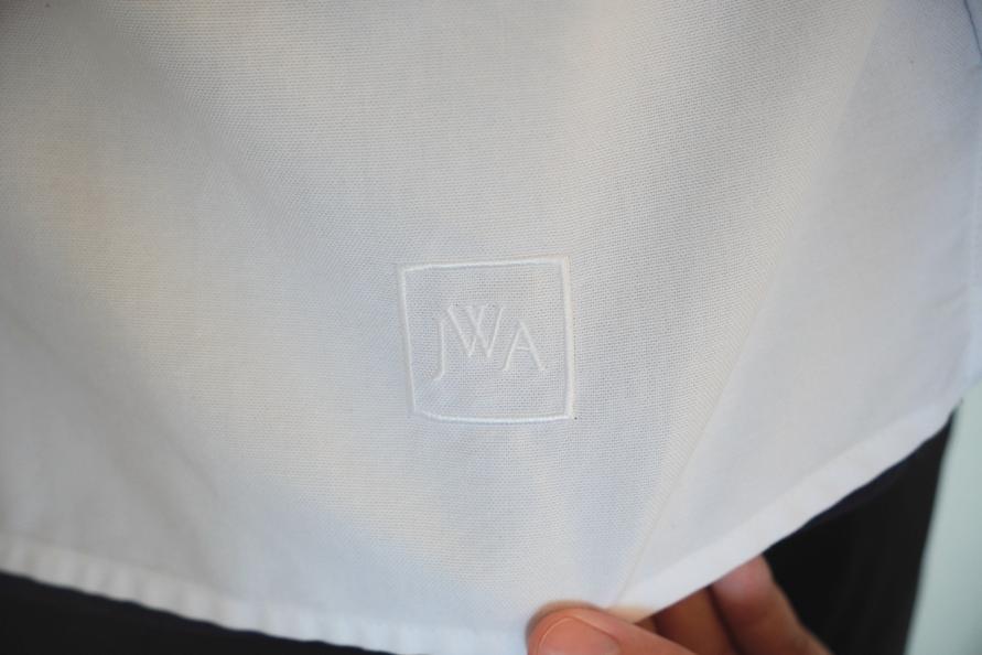 質感がお気に入りで、着るとテンションが上がります。JW ANDERSONの刺繍ロゴもさりげなく入っているのがまたいい。カラーはホワイトを買いましたが、ブルーも爽やかで良さそうです。