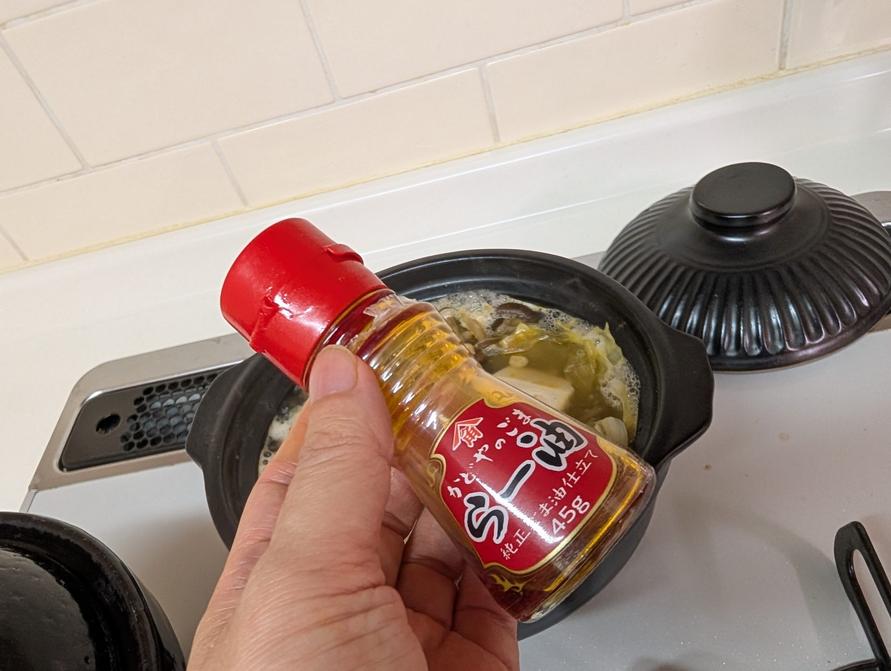 5.味を調整し(辛さが足りなかったら豆板醤をプラス)、仕上げにラー油を一回しすれば完成。