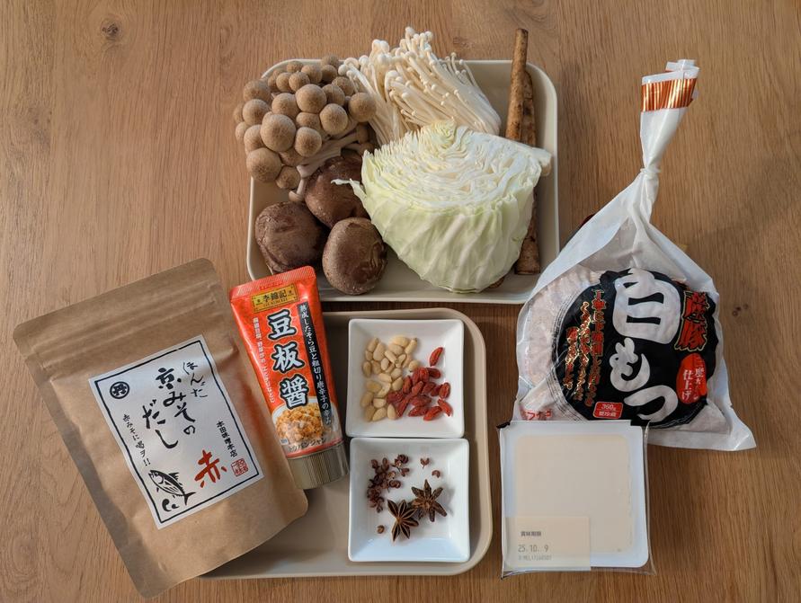 4.もつやごぼうなど、火の通りにくい食材から入れて、キャベツ、きのこ類、豆腐、味噌を加え、クタクタになるまで煮込む。