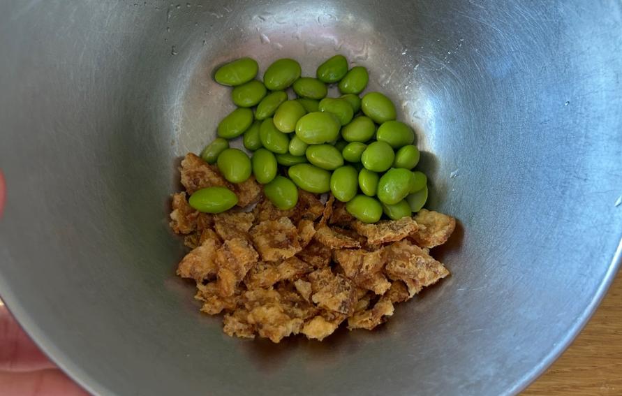 2.ボウルに1と枝豆を入れます。