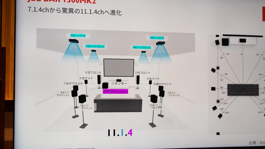 なんとこの「JBL BAR 1300MK2」、最大で11.1.4chでの再生が可能というのです。バグってるとしか思えないこのサラウンドを1本のサウンドバーとサブウーファーだけでどう実現しているのか?
