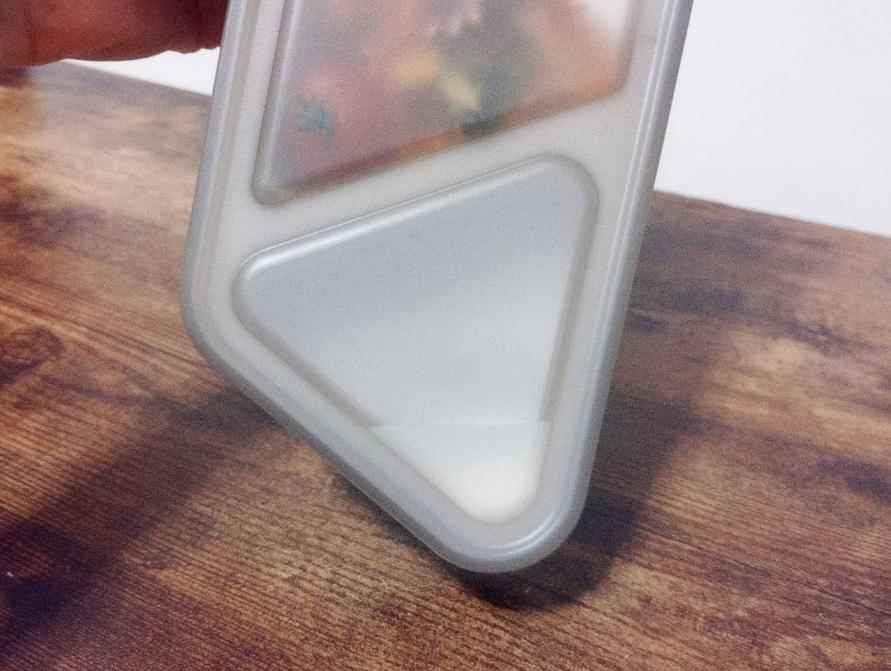 試しに30mlの水を入れて思いっきりふってみたら、外に漏れないのはもちろん、中仕切りを飛び越えて隣のスペースに入ることもなく快適でしたよ! 多少汁気のあるおかずが入っていても大丈夫です。ただ、完全密閉ではないのでめんつゆやお味噌汁などは入れられません。