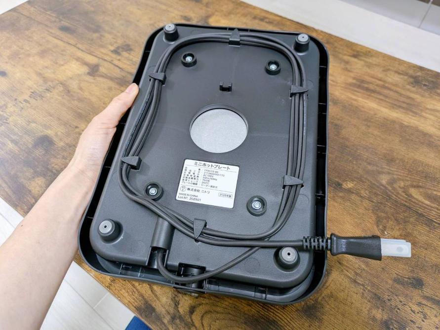 プレートもコードもすべて本体にくっついているので、「あれ?コードどこだっけ? 」なんてことになりません! コードは本体底面に巻きつけられるようになっています。
