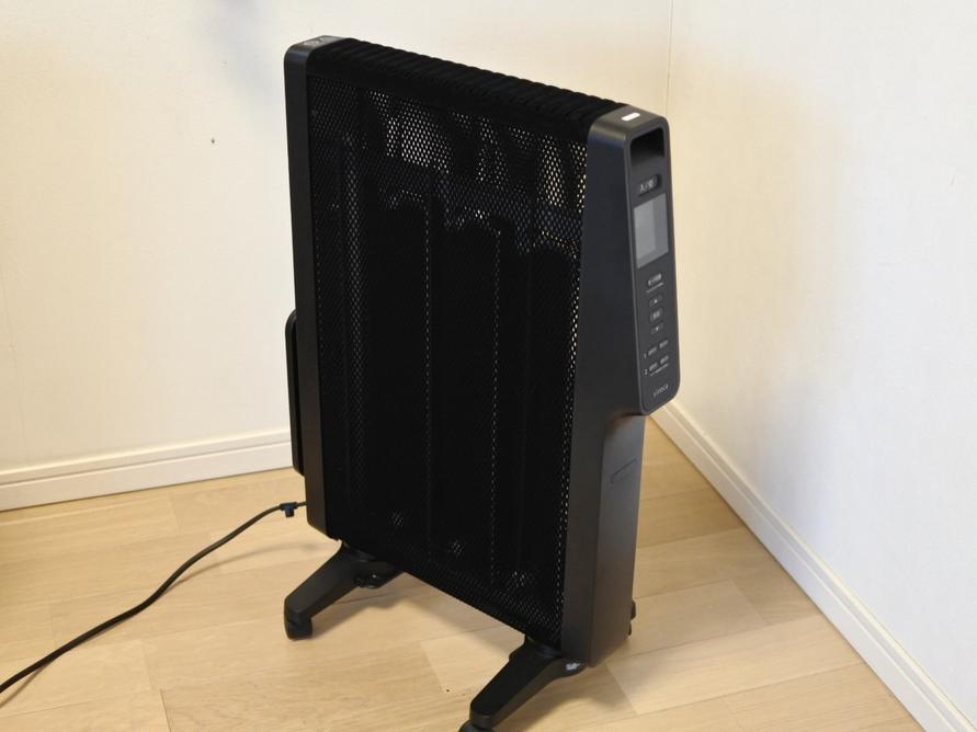 そんななかこのヒーターを導入する決め手になったのは、表面の「フロッキー加工」。万が一、稼働中のヒーターに触れてもベロアのような生地に覆われているので、ペットがいるわが家も安心して使えています。