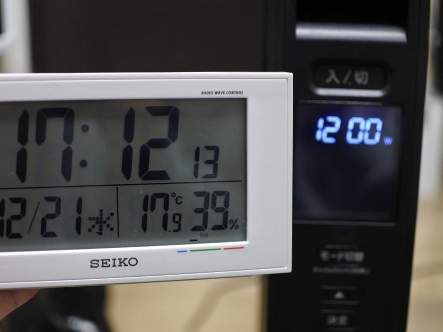 ヒーターをつける前は17.9度。15分稼働させてみると、